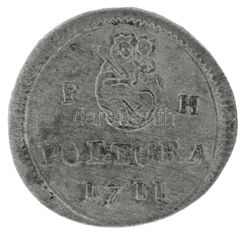 1711PH Poltura Ag "I. József" (1,12g) technológiai hibás veret (anyagfölösleg a Poltura szóban: "P´OLTURA") T:XF,VF / Hungary 1711PH Poltura Ag "I. József" (1,12g) technological error (excess material in the Poltura word: "P´OLTURA")