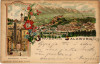1898 (Vorläufer) Salzburg, Elektrischer Aufzug / general view, castle, funicular railway, coat of arms. Schneider & Lux Art Nouveau, floral, litho (small tear)