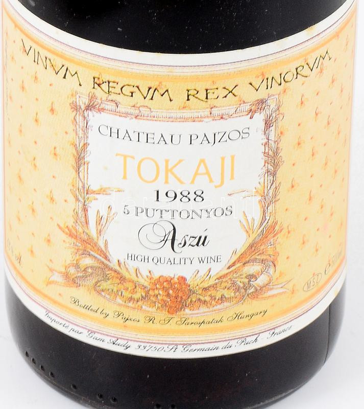 1988 Tokaji aszú 5 puttonyos, Chateau Pajzos, 0,5 l, bontatlan palack bor /// 1988 Tokaji Aszú 5 Puttonyos, Chateau Pajzos, 0.5L, unopened bottle of wine