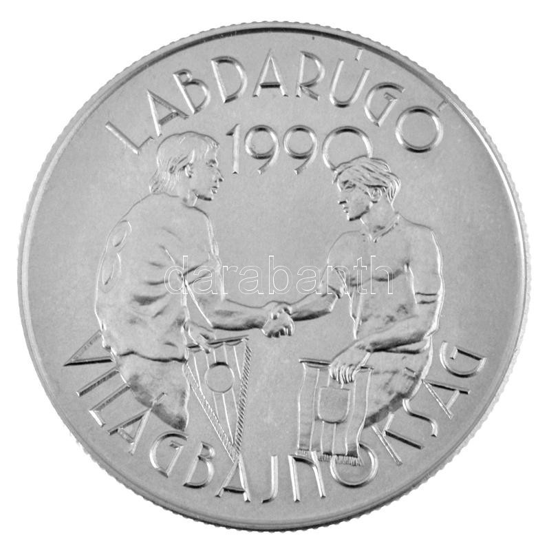 1989. 100Ft alpakka "Labdarúgó Világbajnokság 1990 - Kézfogás" jelzett próbaveret kapszulában. Csak 50 darab létezik belőle! T:BU / Hungary 1989. 100 Forint nickel-silver "FIFA World Cup 1990 - Handshake" marked trial strike in capsule. Only 50 pieces exist! C:BU Adamo EM107