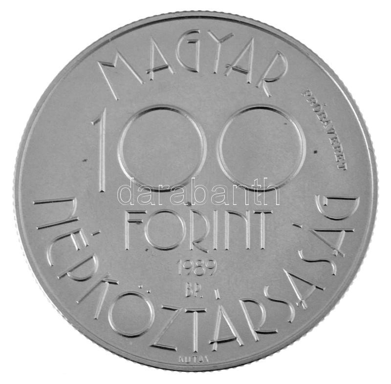 1989. 100Ft alpakka "Labdarúgó Világbajnokság 1990 - Kézfogás" jelzett próbaveret kapszulában. Csak 50 darab létezik belőle! T:BU / Hungary 1989. 100 Forint nickel-silver "FIFA World Cup 1990 - Handshake" marked trial strike in capsule.