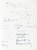 Az aláírók között Földessy János (1888-1965) szövetségi kapitány, a könyv szerkesztőjének aláírásával, valamint a 1929. április. 14.-én a Svájc - Magyarország (4:5) labdarúgó mérkőzésen résztvevő válogatott labdarúgók aláírásaival, közte, Ströck Albert (1903-1971), Toldi Géza (1909-1985), Dénes József (1905-1936), Borsányi Ferenc (1902-1958), Kvasz János (1905-1970?), Weinhardt Ferenc (1903-1980), Fogl Károly (1895-1969), Opata Zoltán (1900-1982), Takács József (1904-1983), Emődi Rezső (Emmerling, 1903-1976), Hirzer Ferenc (Híres, 1902-1957), (Kompóti-) Kléber Gábor (1901-1973) aláírásaival, valamint Minder Frigyes (1880-1968) MLSZ háznagya, volt labdarúgó, és volt szövetségi kapitány, Mamusich Mihály (1888-1956) az MLSZ válogató bizottságának tagja, Nemzeti Sport munkatársa aláírásaival. Egy azonosítatlan aláírással. Rendkívül izgalmas, egyedül álló gyűjtői darab. /