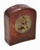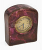 Asztali óra, lilás színű, lekerekített tetejű mázas kerámia házzal, alján benyomott formaszámmal, az óraszerkezet tisztításra szorul, 13,5x10,5x4,5 cm