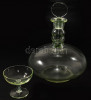 cca 1910 Uránnal színezett dugós italos üveg és egy pohár, poháron kis pattanással, m: 6-20,5 cm