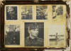 cca 1930-40 Fiatal főhadnagy portréja egyenruhában és róla készült fotók civilben, többek közt egy szatócsboltban, össz. 7 db fotó egy üvegezett, korabeli, sérült fakeretben, 6x4,5 és10x8 cm közti méretekben