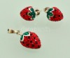 Ezüst(Ag) apró kövekkel kirakott eper alakú fülbevaló és függő, jelzett, bruttó: 5,6 g