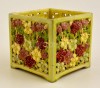 Fischer Emil áttört szögletes kaspó, kézzel festett mázas porcelánfajansz, jelzett, hajszálrepedéssel, apró máz hibákkal, m: 12,5 cm, 13,5×13,5 cm