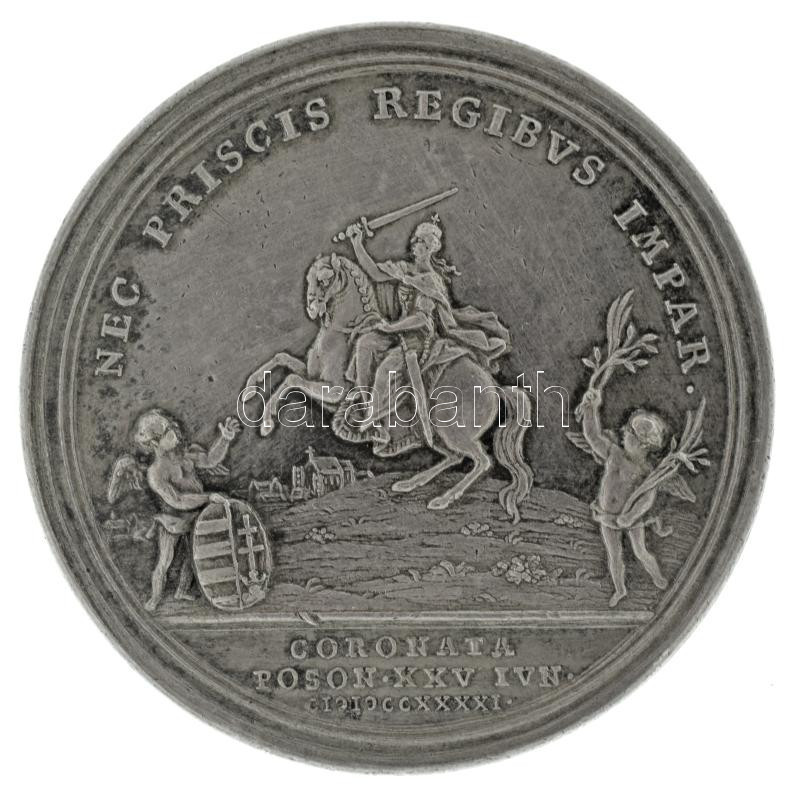 Habsburg Birodalom / Pozsony 1741. Mária Terézia magyar királynővé koronázása Pozsonyban "MARIA THERESIA HVNG. BOH. REG. ARCHID. AVST. / NEC PRISCIS REGIBVS IMPAR. CORONATA POSON XXV. IVN." kétoldalas Ag koronázási zseton. Szign.: "Andreas Vestner" (29,53g/44mm) T:AU /