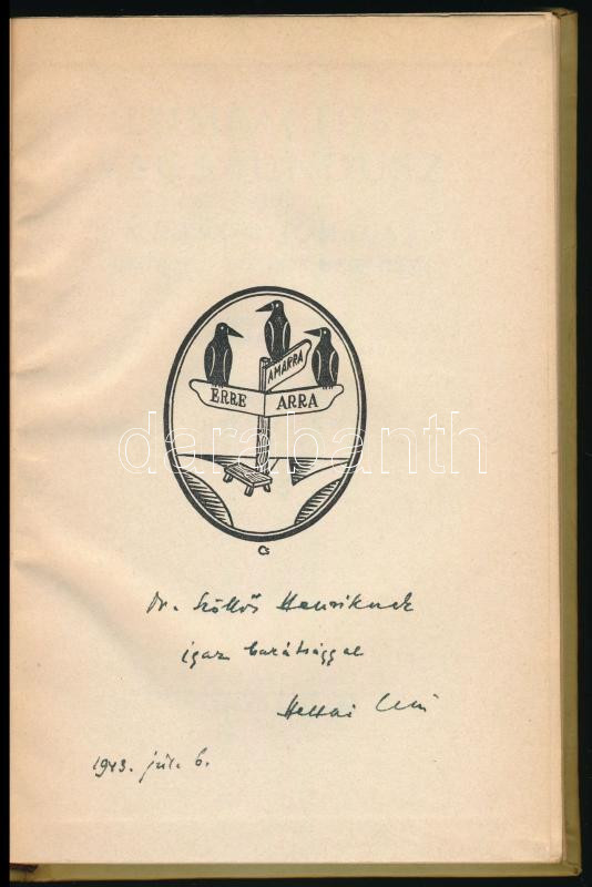 Heltai Jenő: Lumpáciusz Vagabundusz vagy a három jómadár. dr. Szőllős Henrik (1886-1945) urológus, orvosnak dedikált példány! Nestroy bohózatos mesejátéka (1833). Három felvonás (előjáték és kilenc kép). A mai színpadra átírta és versbe szedte - -. Bp., 1943, Szerzői, Athenaeum, 163 p. Első kiadás. Kiadói papírkötésben