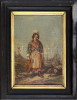 Jelzés nélkül: Kosaras lány.. Olaj, farost. Keretben. 23x15 cm
