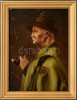Jelzés nélkül: Pipázó paraszt. Olaj, kartonra kasírozott vászon. Kopott, apró sérülésekkel. Kopott fakeretben. 37x27,5cm