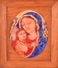 Kővágóné (Zsóri) Balogh Erzsébet (1955- ): Kis madonna, tűzzománc, jelzett, fa keretben, 21×16,5 cm