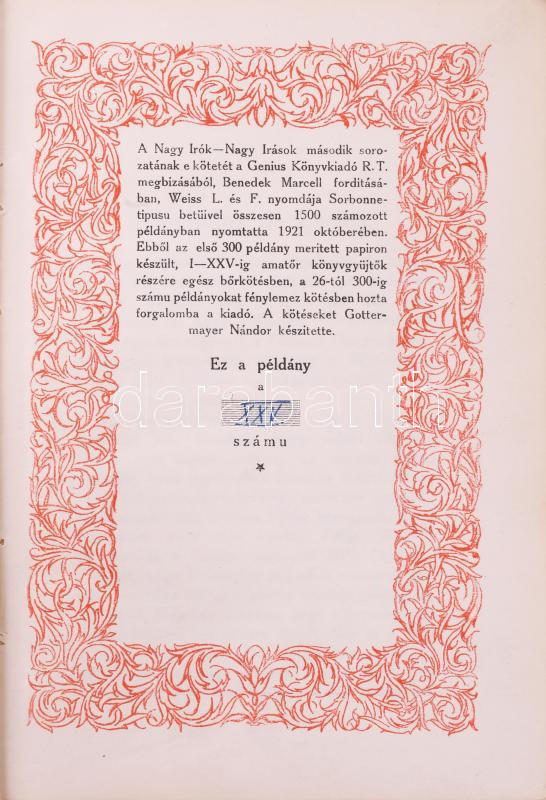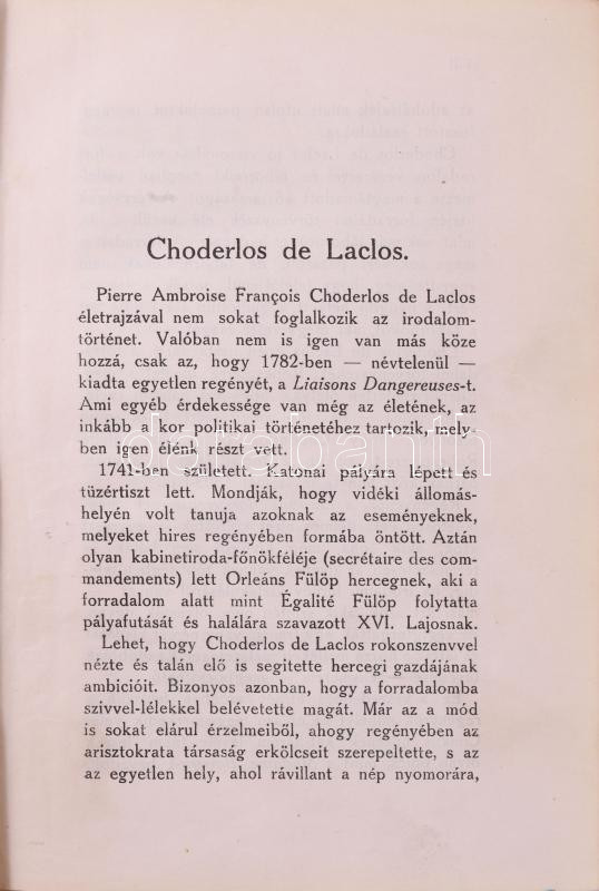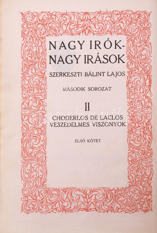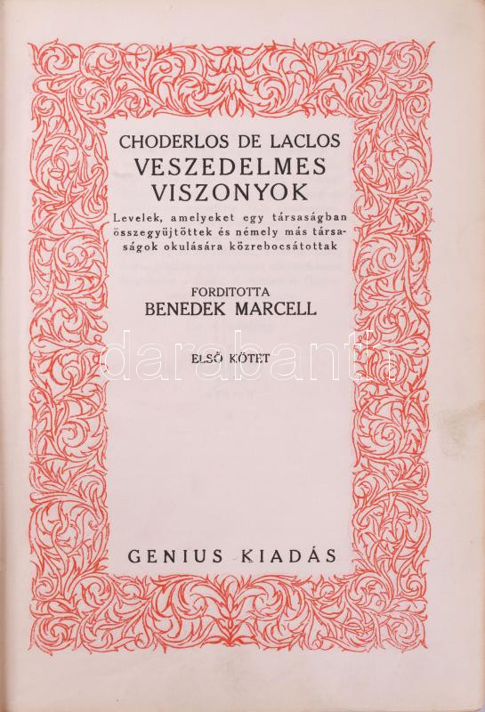Laclos, Choderlos de: Veszedelmes viszonyok I-II. kötet egybekötve. XXV. számozott példány. Kiadói egészbőr kötés, gerinc kissé kopott, kissé kopottas állapotban, ajándékozási sorokkal.
