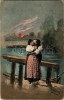 Lady art postcard, romantic couple kissing, folklore s: Ernst (EK)