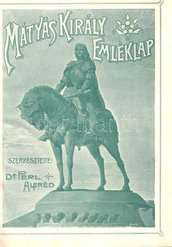 Mátyás király emléklap. A kolozsvári Mátyás szobor leleplezése alkalmából. Szerkesztette: Perl Alfréd. (Dedikált.)