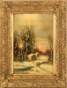 Olvashatatlan jelzéssel: Téli séta. Olaj, vászon. Antik fakeretben. 53x37 cm