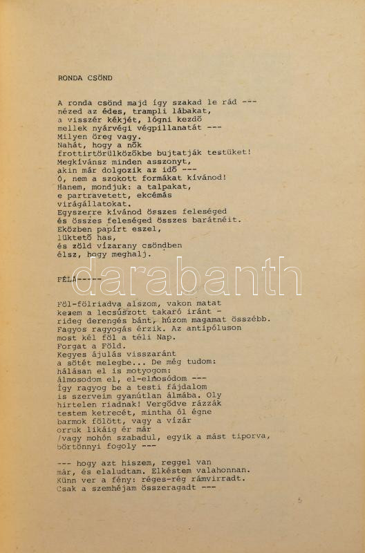 Az Örökhétfő az első szamizdatban megjelent magyar verseskötet! Petri György költészetének alapvető fontosságú kötete, a közép-európai közéleti és magánéleti válságjelenségek, úttévesztések és értelmiségi kilátástalanságok megformált verseskötete, az első szamizdat kiadású verseskötet. Megjelent illegálisan, 940 példányban, szitanyomásban. A kiadói védőborítón a kiadó gondozásában megjelent kötetek, illetve egy fontos felhívás: ?Ha kiadatlan kézirattal, gép- és stencilpapírral, nyomdafestékkel, szabad nyomdai kapacitással vagy bármi mással segíteni kívánja munkánkat, Rajk László szamizdat-butikját keresse fel. A butik minden kedden este nyolctól tízig tart nyitva. Cím: Bp., V. Galamb u. 3.?