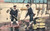 Pola, Deckreinigung / K.u.K. Kriegsmarine, mariners cleaning deck
