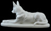 Porcelán kutya, fehér mázas, jelzett, gyári hibákkal, h: 36 cm
