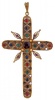 Réz filigrán kereszt medál, különböző csiszolt üveg díszítésekkel, hiányos, 6×10 cm