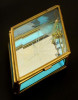 Rombusz alakú réz keretes dobozka, metszett üveg berakásokkal, 12,5×8×3,5 cm