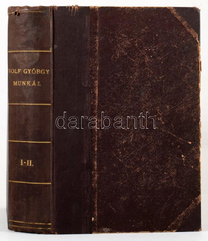 Volf György: Volf György összegyűjtött munkái I-II. köt. Kiadja a Magyar Tudományos Akadémia támogatásával Dr. Demeczky Mihály. Bp., 1907-1914,Franklin, 4+426+373 p. Átkötött félvászon-kötés, márványozott lapélekkel, kopott borítóval, kissé sérült gerinccel, a címlapon régi bélyegzéssel és bejegyzésekkel.
