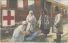 Weltkrieg 1914-1917. Österreichischer Sanitätszug in der Bukowina / WWI Austro-Hungarian K.u.K. military art postcard, hospital train in Bukovina, injured soldier with Red Cross nurses (ragasztónyom / glue mark)
