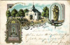 1899 (Vorläufer) Lipová, Hainspach; Gruss vom St. Annaberg (Böhmen) / Anensky vrch / pilgrimage site, chapel, altar. Art Nouveau, floral, litho (EB)