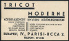 cca 1930-35 Tricot Moderne kötött-szövött divatáru különlegességek, Bp., Párisi-ucca u. 2., névjegykártya-szórólap, hátoldalán kézzel írt árajánlattal,