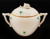 Herendi zöld virágmintás porcelán cukortartó, a rózsán apró lepattanással, kézzel festett, jelzett(mélynyomás), m: 10 cm, d: 9,5 cm